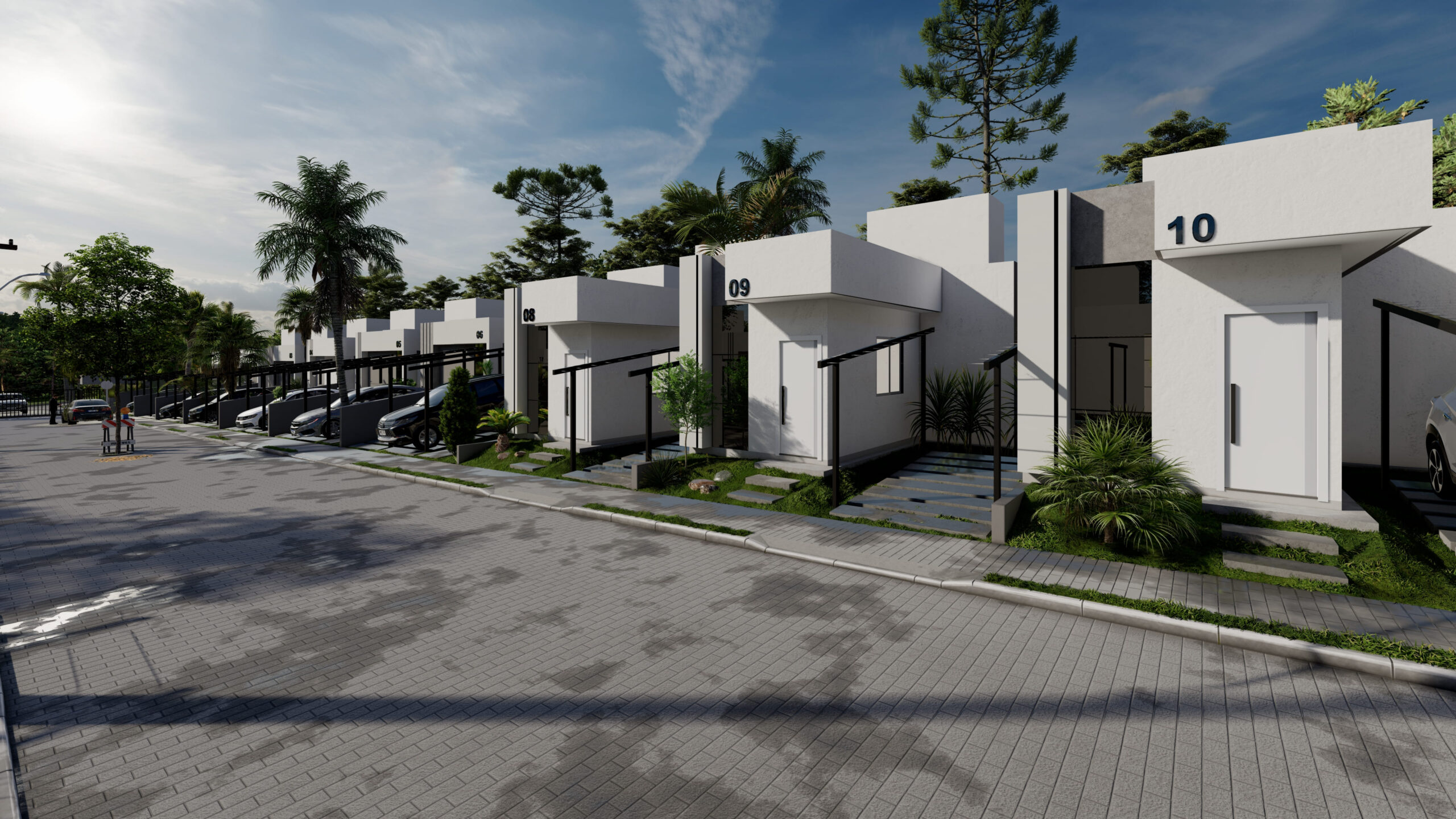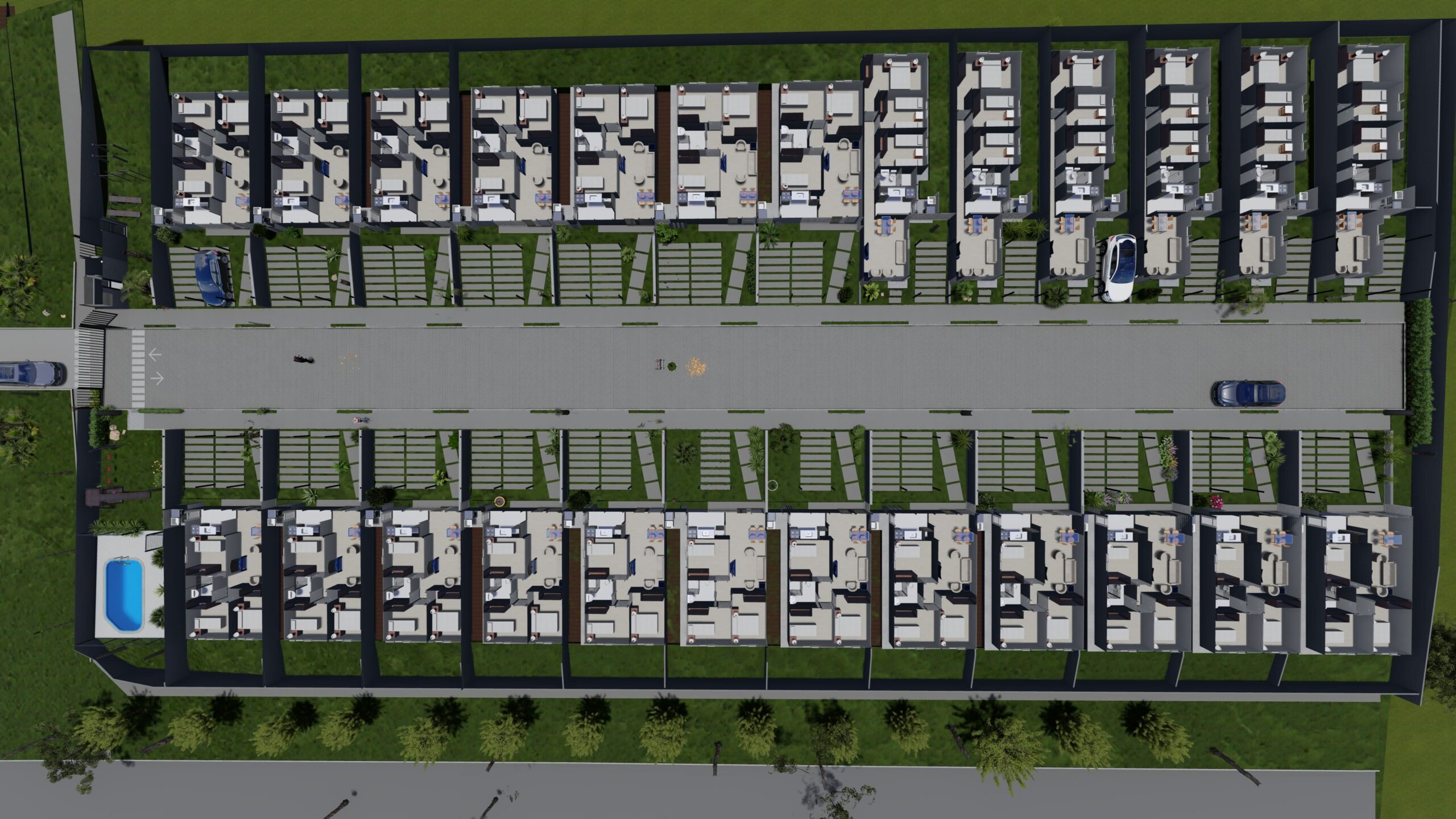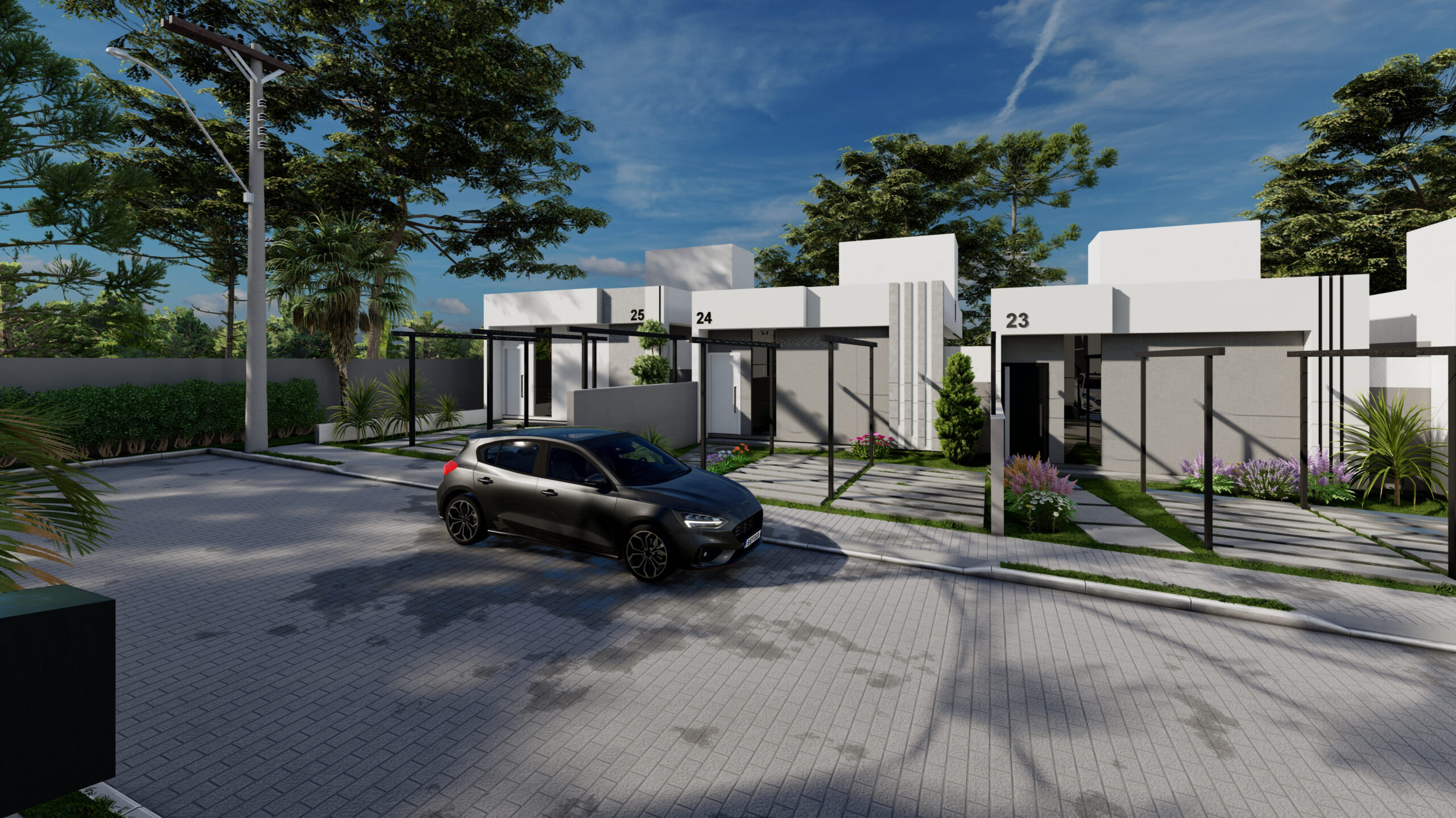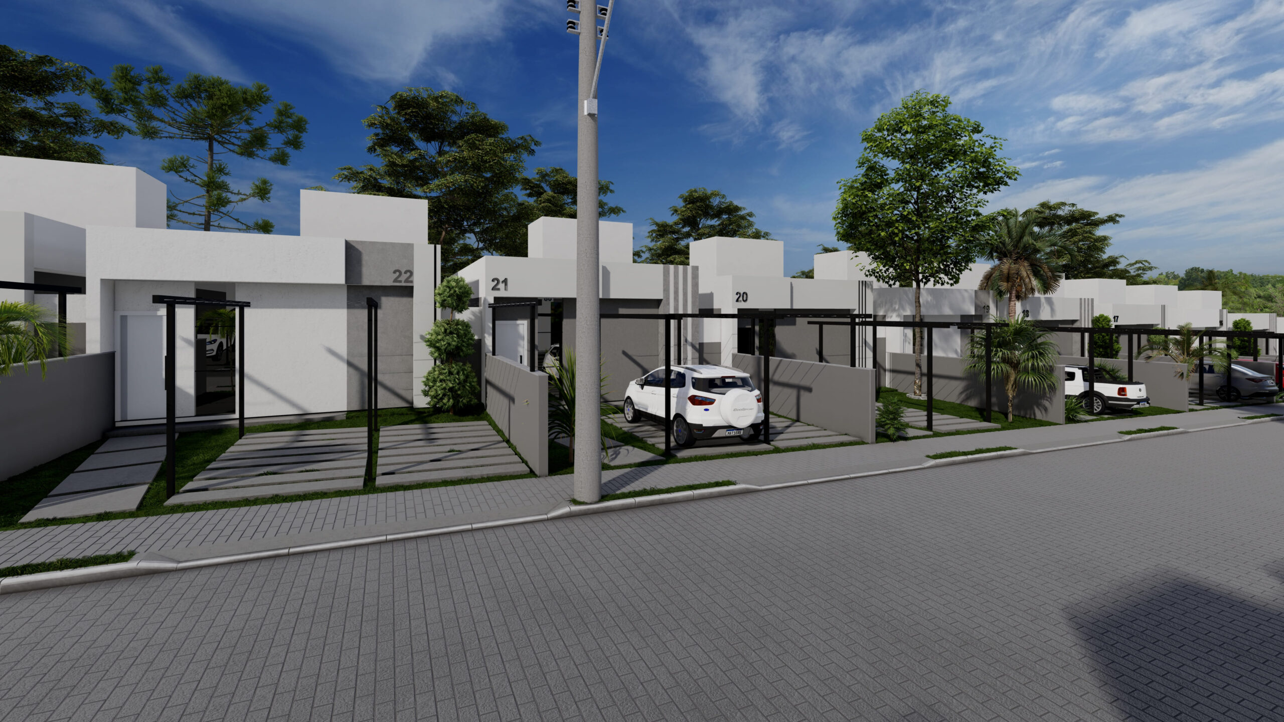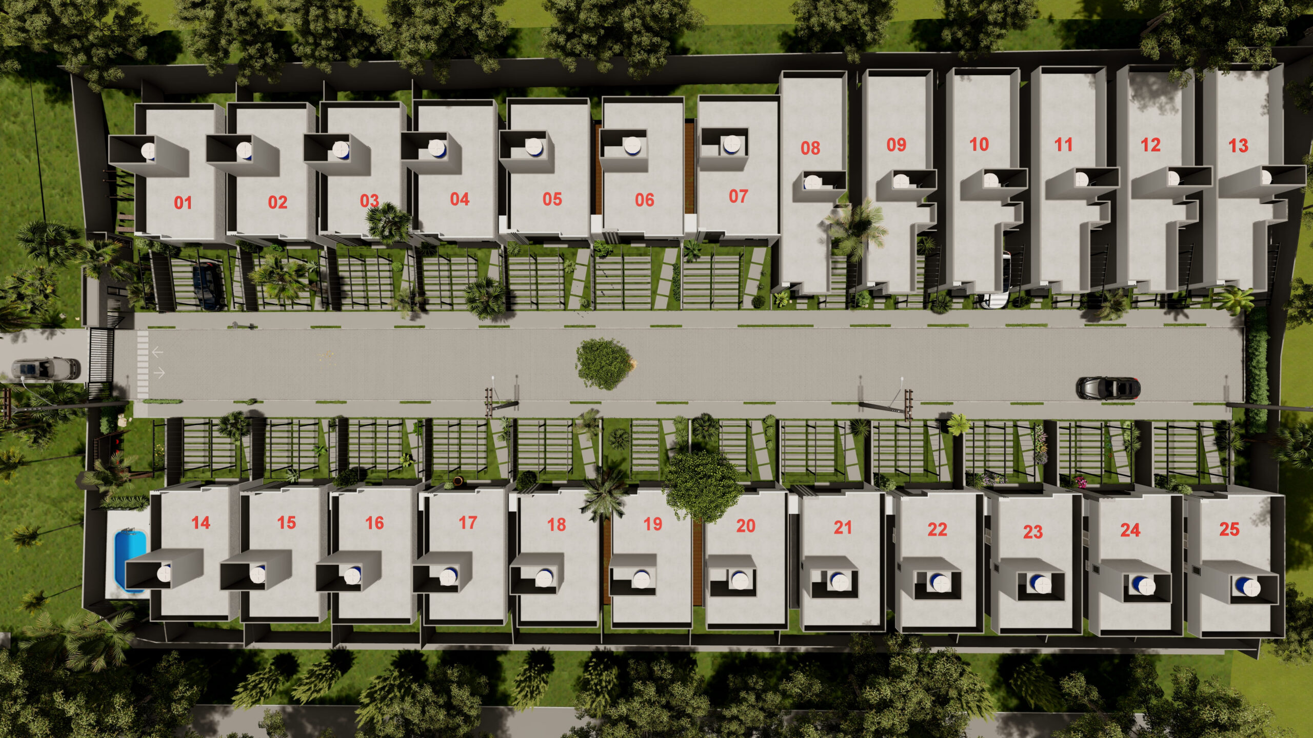 • Rua única central com 25 unidades