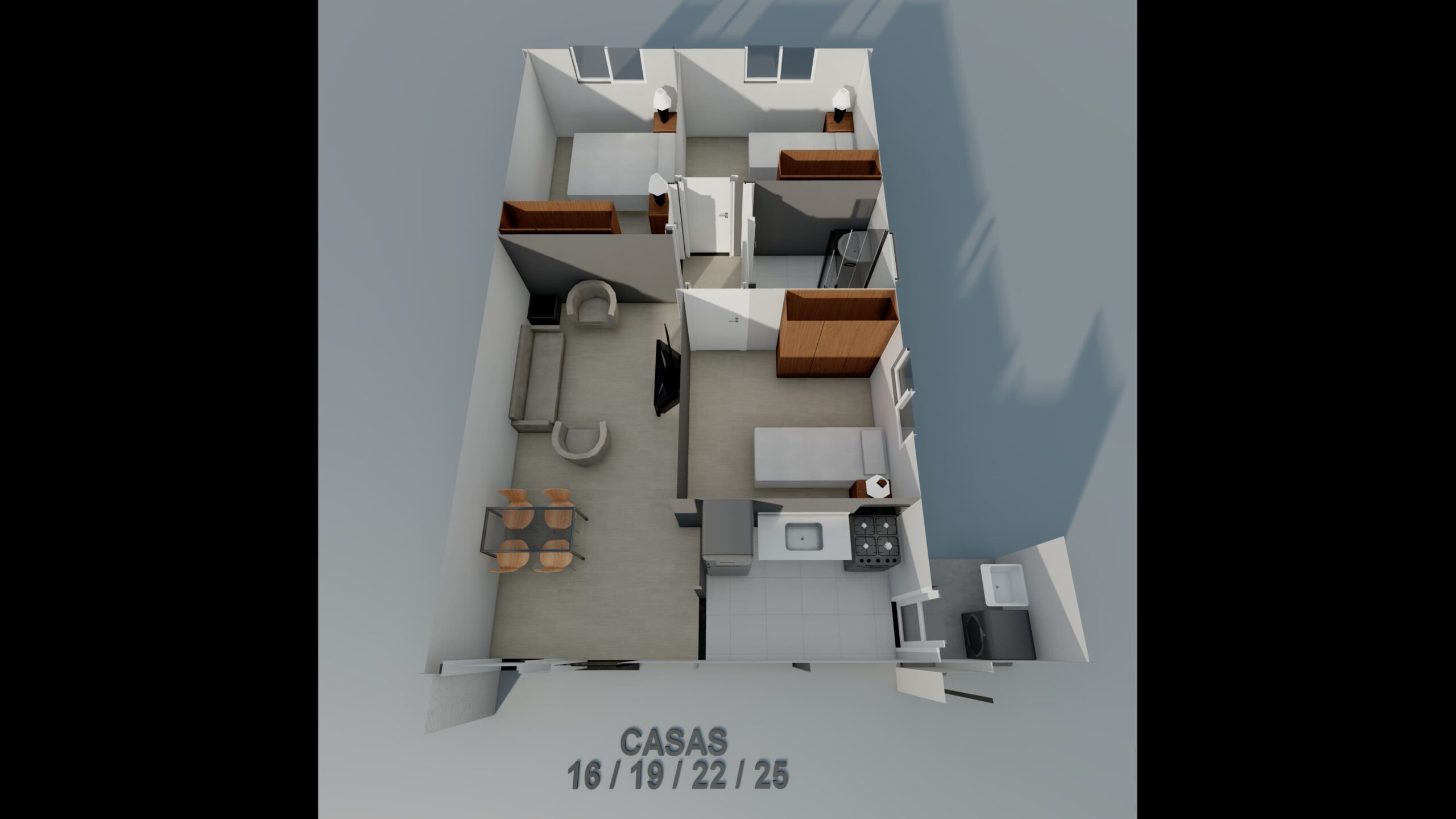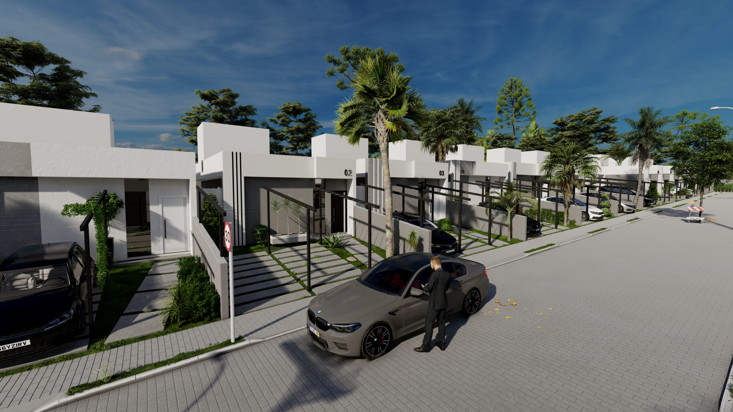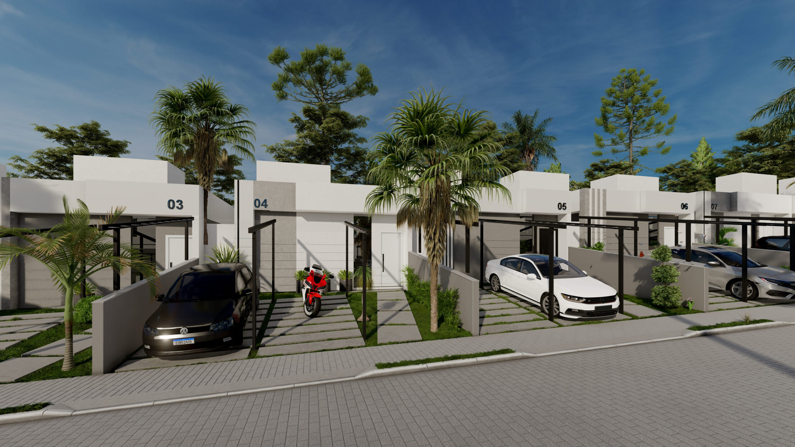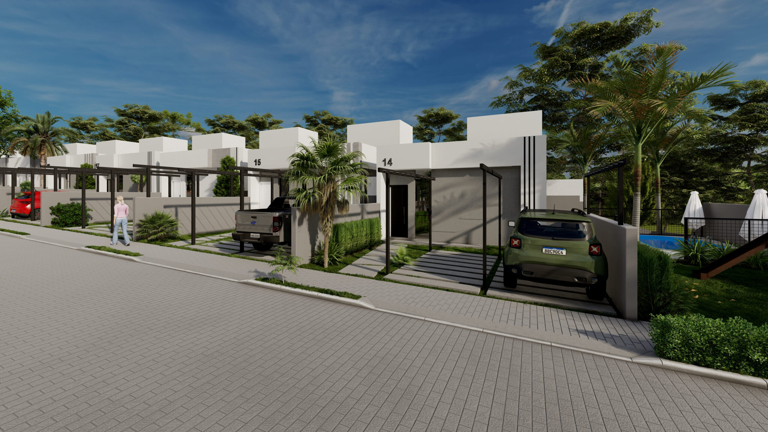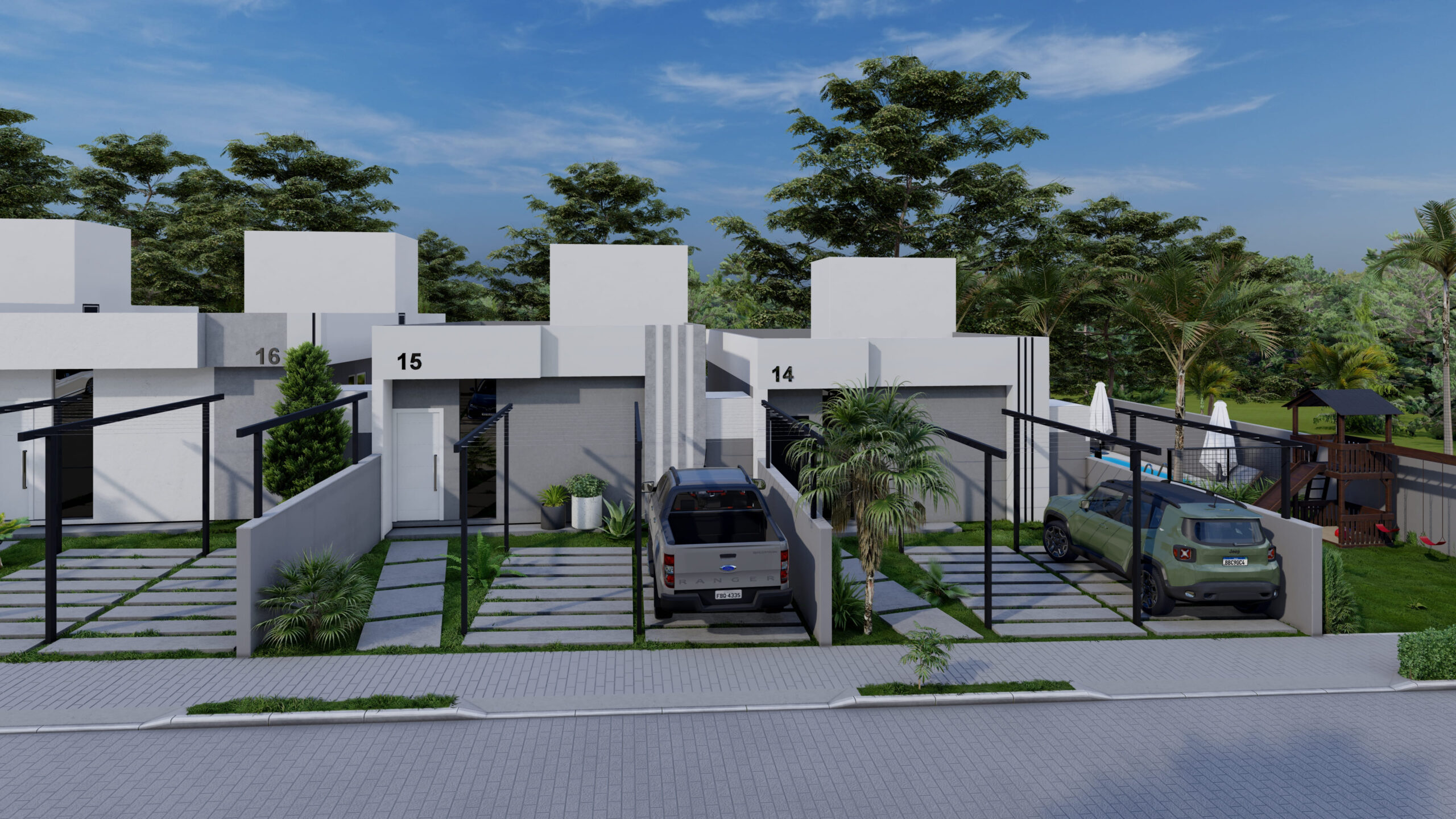 • Rua única central com 25 unidades